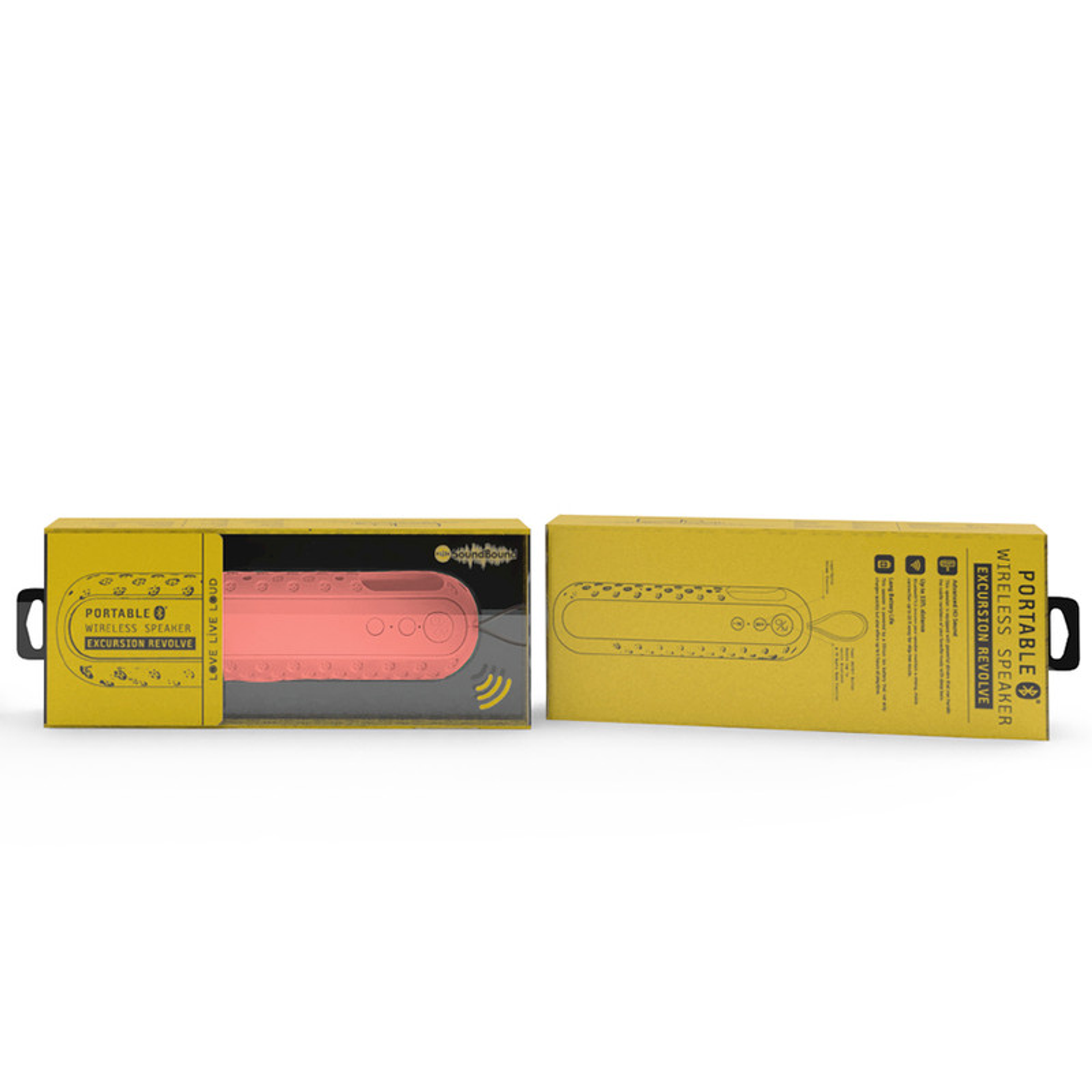 The SoundBound Excursion Revolve Circle Dotted Wireless Bluetooth Speaker is a portable audio device designed for versatile use. It features a built-in SD card slot, USB port, and hands-free microphone, allowing for convenient playback and communication. With a total output of 6 Watts from dual 4O3W speakers, it provides powerful sound for an immersive listening experience. This speaker is capable of delivering music for up to 6 hours, making it suitable for both indoor and outdoor activities. Its stylish design in a coral color adds to its aesthetics, making it a pleasing addition to any environment.