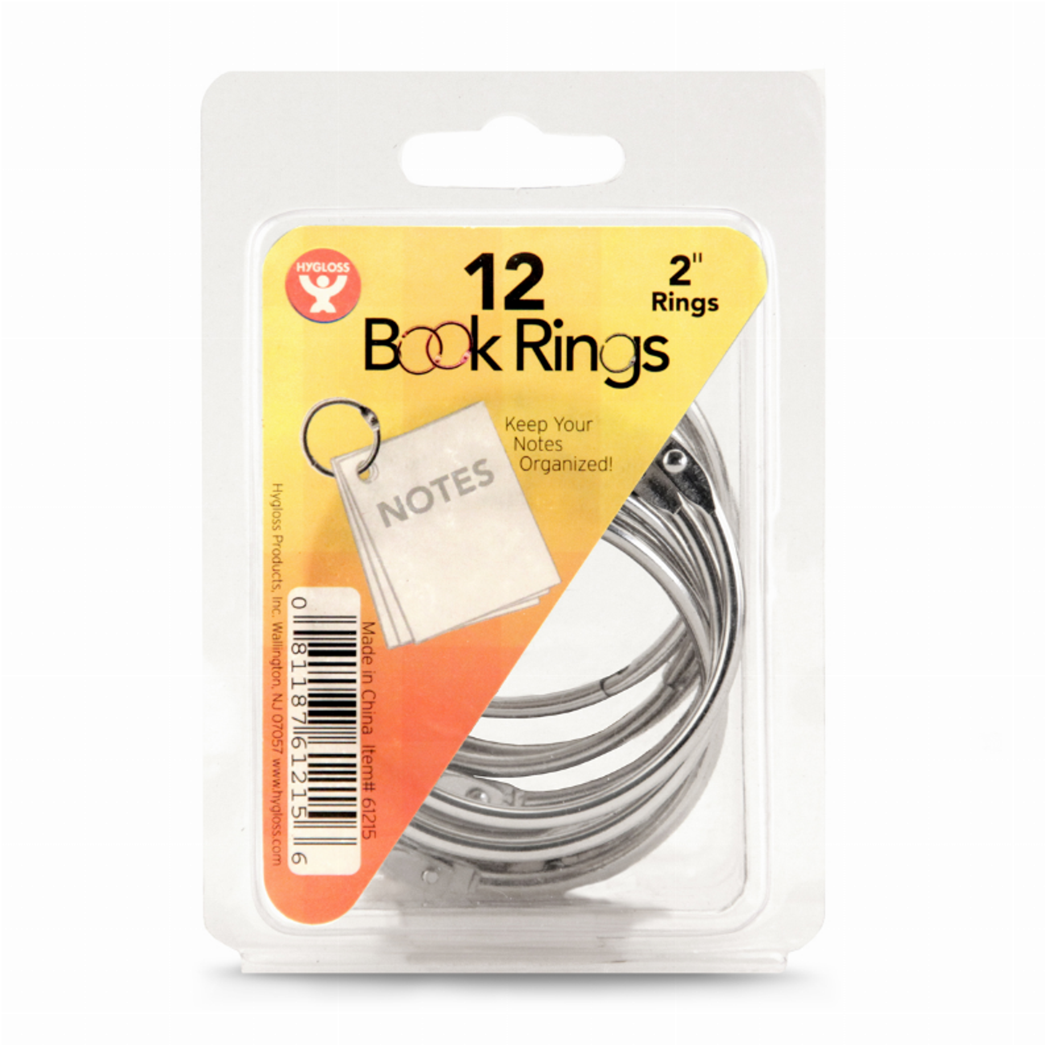 Book Rings are versatile metal rings designed to organize and bind loose papers, cards, and other materials. Each ring measures 2 inches in diameter and comes in a silver finish, adding a sleek look to your organization needs. This pack includes 12 rings, providing ample quantity for various projects or multiple uses. The sturdy construction ensures durability, making them suitable for both home and office environments. These rings are perfect for keeping documents organized, creating custom binders, or even for crafting projects, allowing you to maintain order and accessibility in your workspace or creative area.