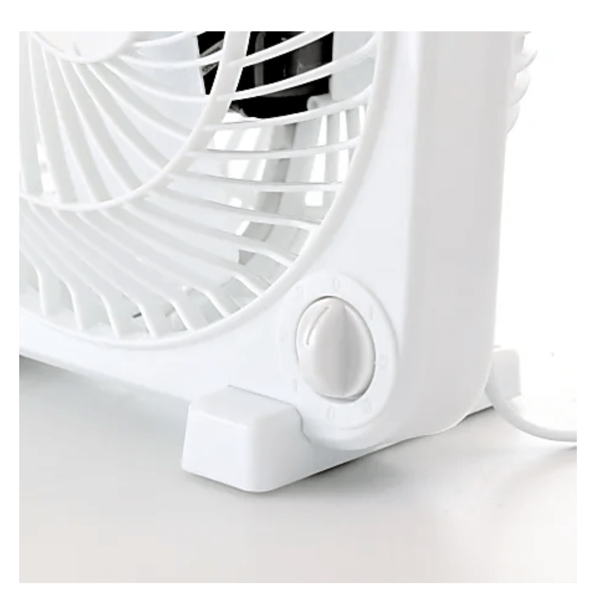 Box Fan 3-Speed Whisper-Quiet 9 Inch White Plastic Compact Portable for Home Office Dorm Travel