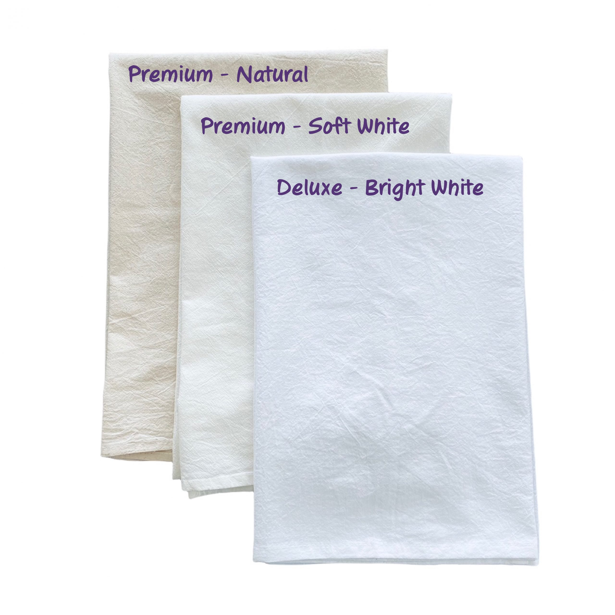 Flour Sack Towel Kitchen Bright White 100 Percent Cotton Heavy Weight 130 Thread Count Corner Hang Loop Made in India