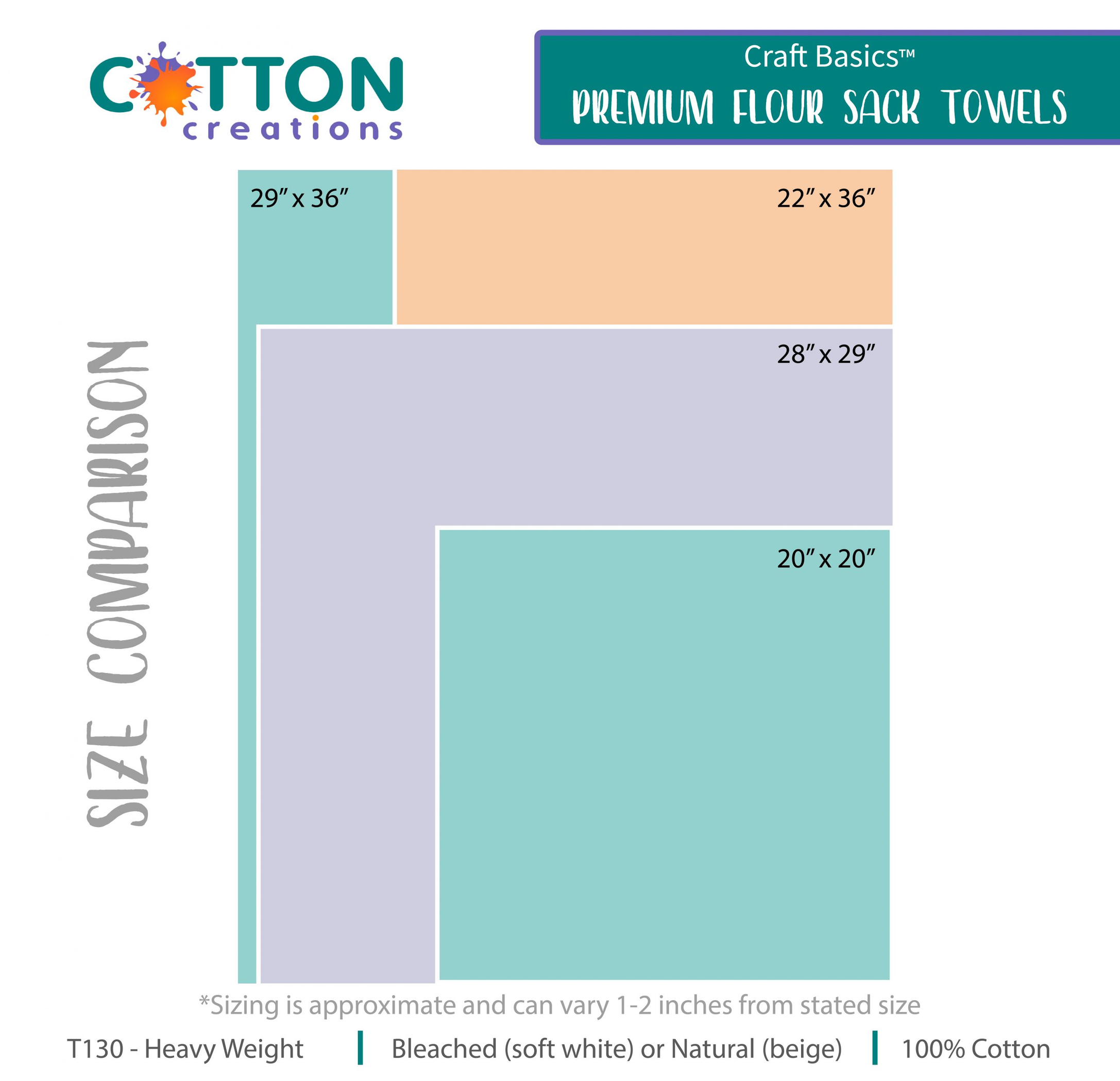 The Premium Flour Sack Towel by Craft Basics, available in a pack of ten, is an American-made kitchen accessory designed for various culinary tasks. Crafted from a blend of 98% cotton and 2% polyester, these towels are soft to the touch and lint-free, making them ideal for drying dishes, covering rising dough, or cleaning surfaces. The towel features a rustic textured finish in a soft white color or natural unbleached option. With a heavy-weight design and a thread count of T130, these towels offer durability and absorbency. Each towel may vary slightly in size due to the piece processing method. Perfect for home kitchens or professional settings, these towels are a reliable choice for everyday use.