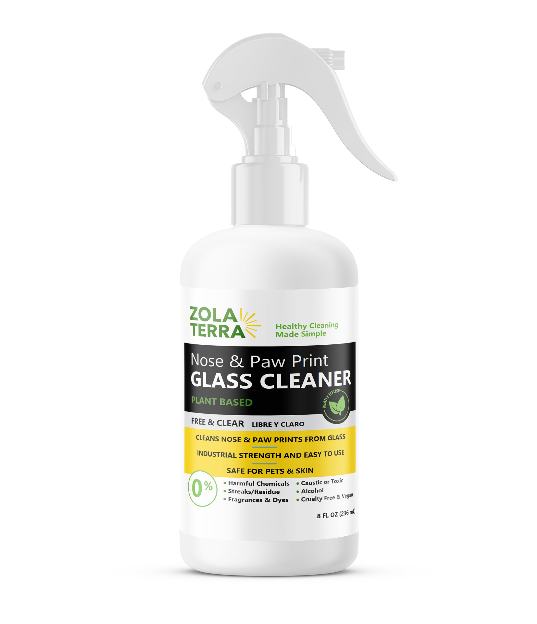Glass Cleaner for Pet Smudges on Windows Windshields and Mirrors Plant Based Formula Biodegradable Safe for Skin Family Made in the United States