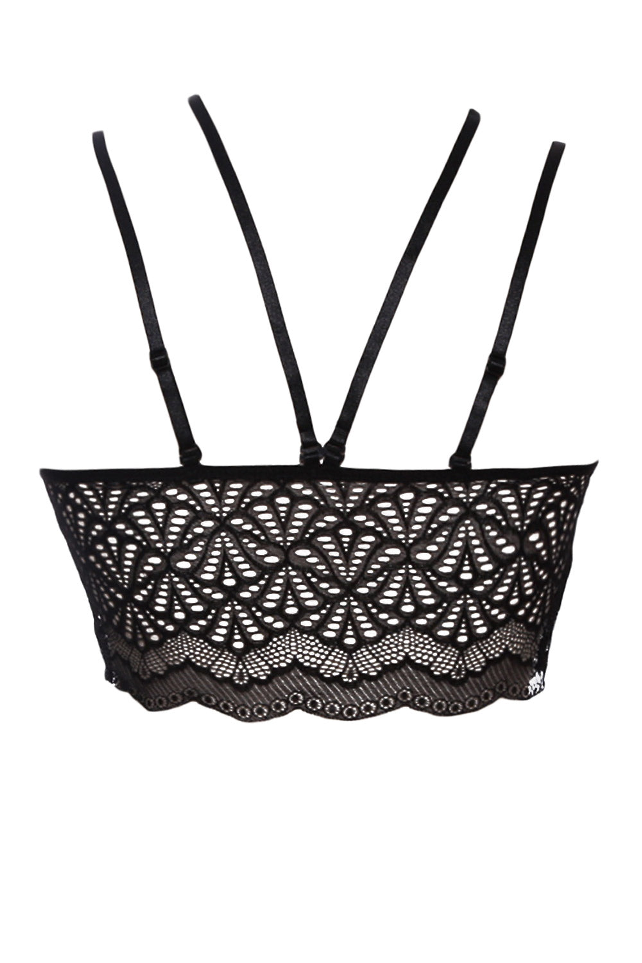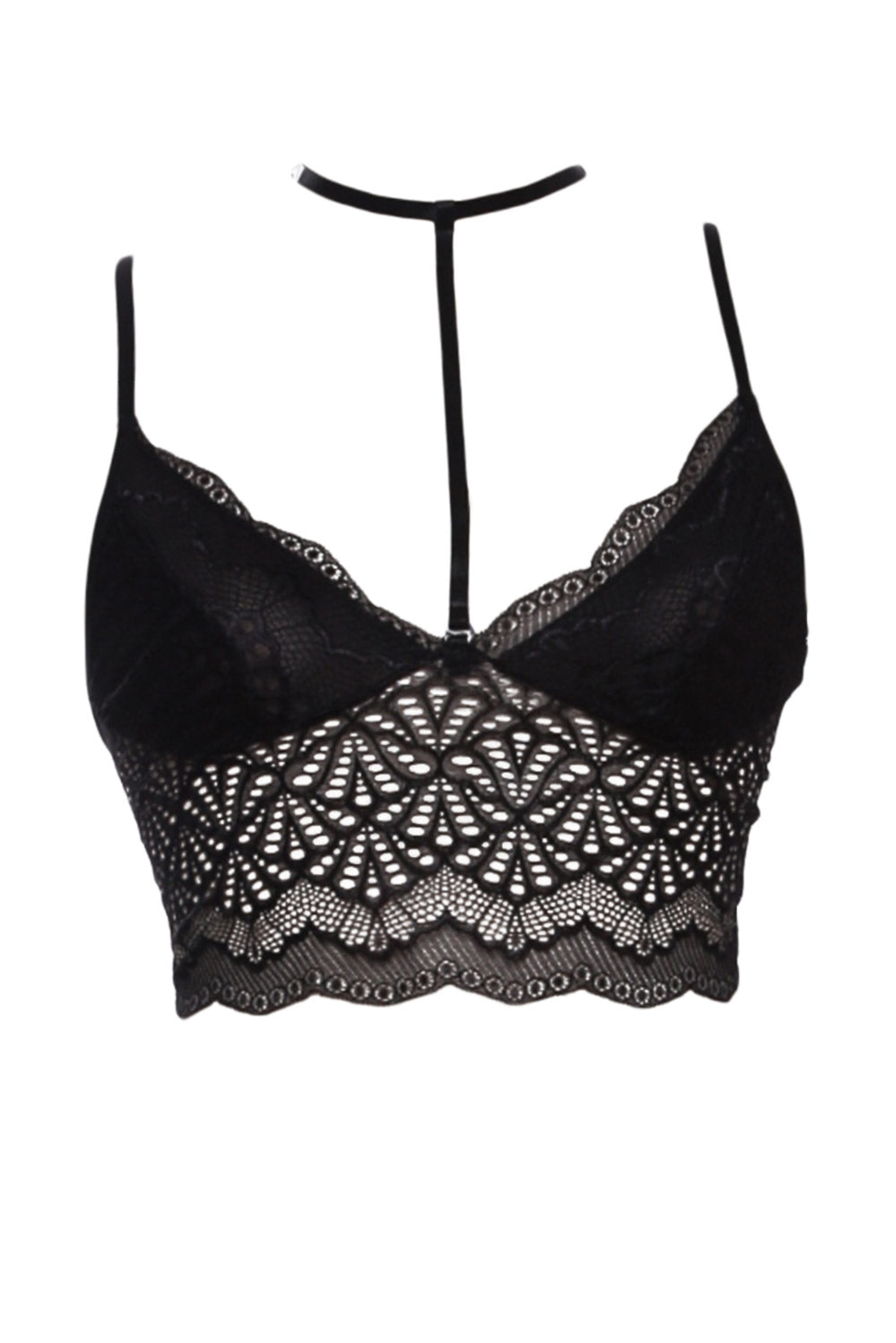 This product is a seductive strappy choker lace bra designed to excite and enhance the intimate experience for both partners. The bralette features beautiful soft scalloped lace that adds an element of charm while maintaining a sultry allure. It is equipped with classic adjustable straps for a customizable fit, ensuring comfort and style. Ideal for special occasions or an intimate evening, this piece can be paired with your favorite lace thong to complete the look. The delicate craftsmanship of the lace makes it a thoughtful gift for your lover, combining elegance with allure for memorable moments.