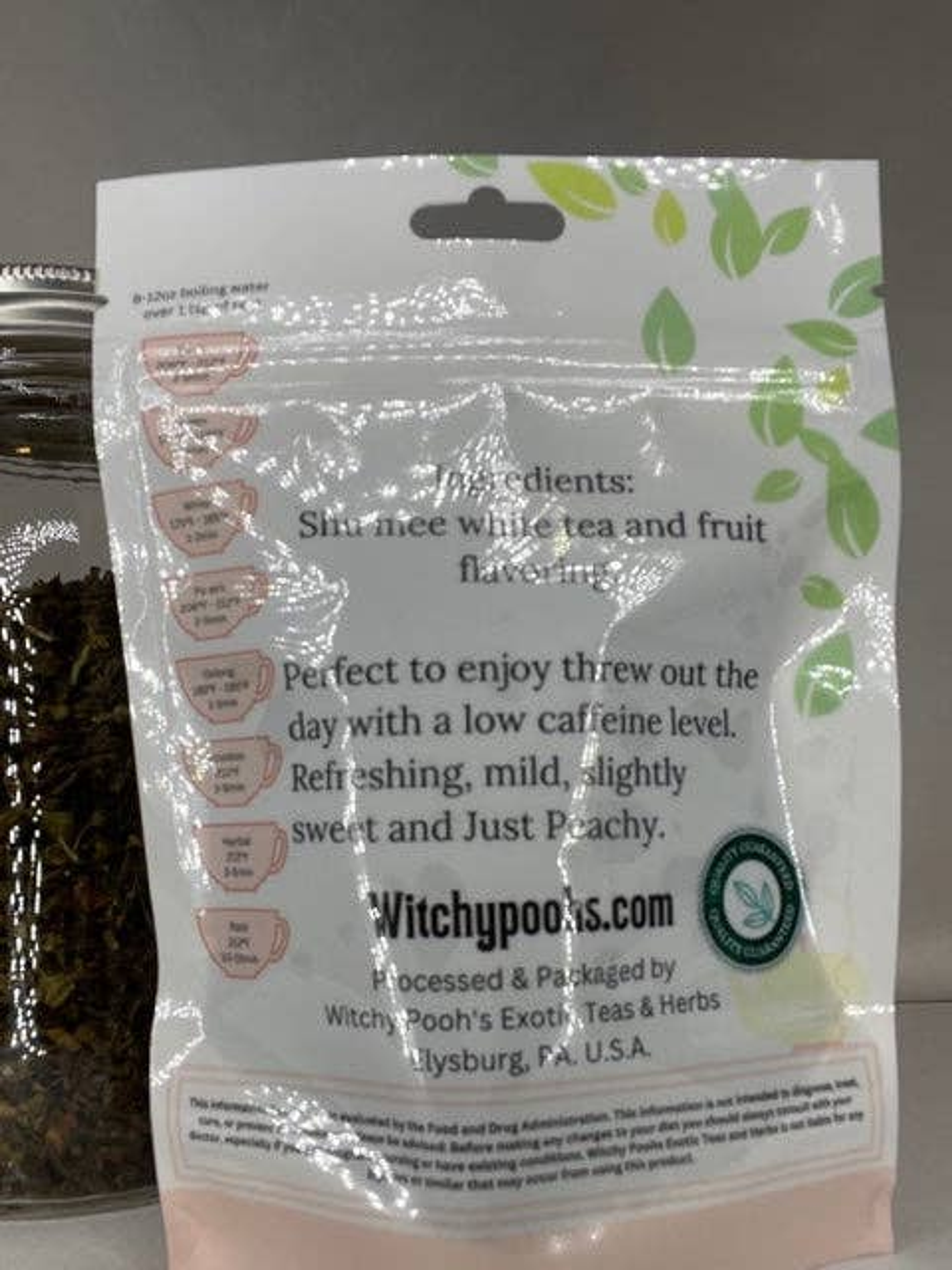 Loose Leaf Tea White Tea Peach Flavor Low Caffeine Shu Mee 1 Ounce 28 Grams Relaxing Beverage Perfect for Any Time
