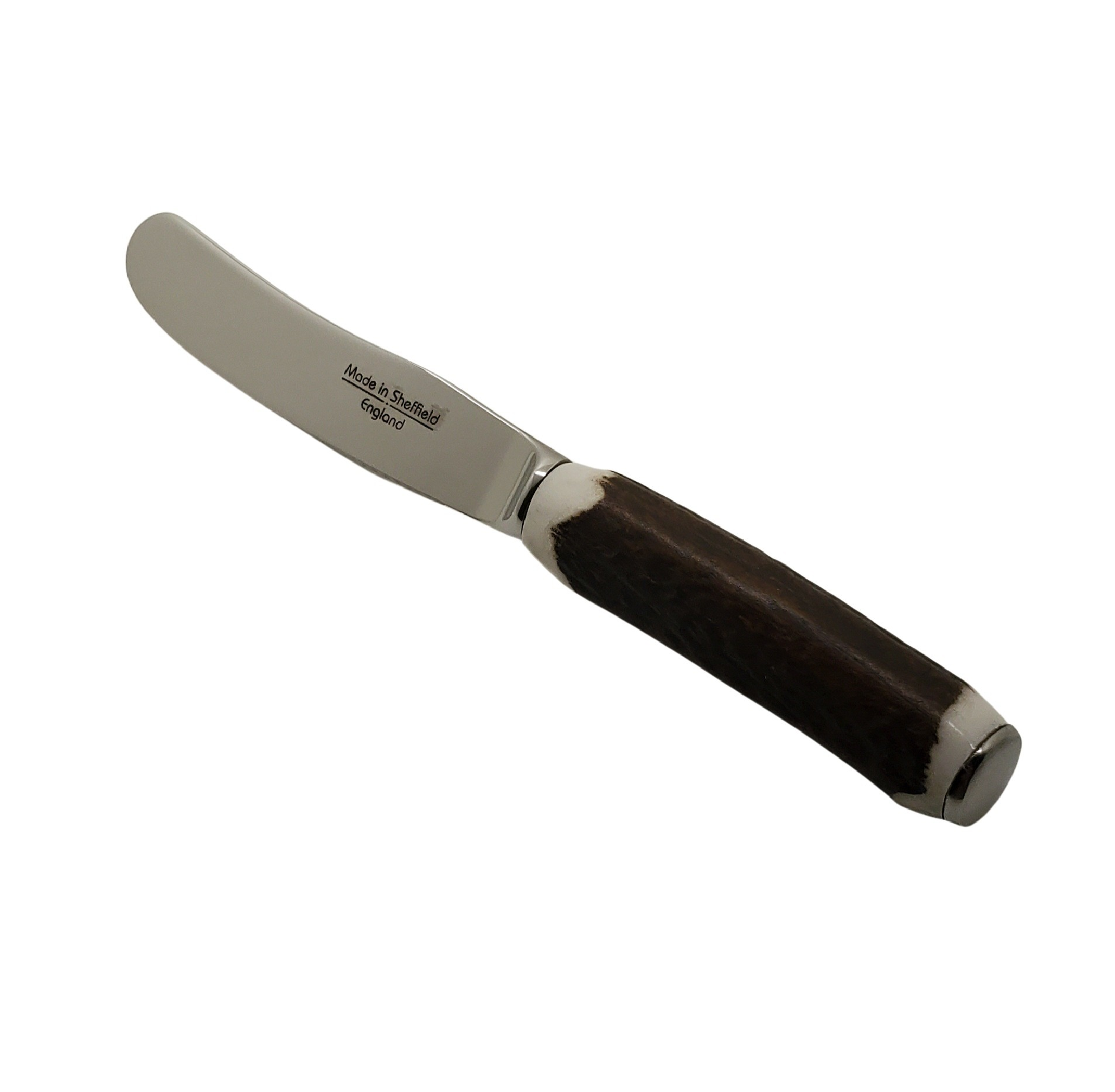 The Horn-Stag 7.5" Naturally Shed Serving Knife is a kitchen tool designed for serving food. It features a blade measuring 7.5 inches, crafted from naturally shed horn, which provides a unique and natural aesthetic. The knife has a comfortable grip that is easy to handle, making it ideal for serving a variety of dishes. Its size and design allow for precise serving, making it suitable for both casual and formal dining contexts. The serving knife is typically used during meals for serving entrees and sides, adding an organic touch to the table setting. It includes no additional accessories, emphasizing its simplicity and functionality.
