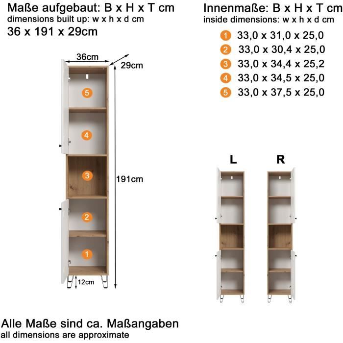 The TRENDTEAM high cabinet from the Touch series features two doors and measures 36 cm in length. Its design combines a white and brown color scheme, making it a stylish addition to various decor styles. The cabinet is ideal for storing items efficiently while maintaining an organized space. Its height allows for optimal use of vertical storage areas, making it suitable for small rooms or tight spaces. This cabinet is typically utilized in living rooms, bedrooms, or hallways to house personal belongings, clothing, or household essentials. It does not include any additional accessories, focusing solely on functionality and simplicity.