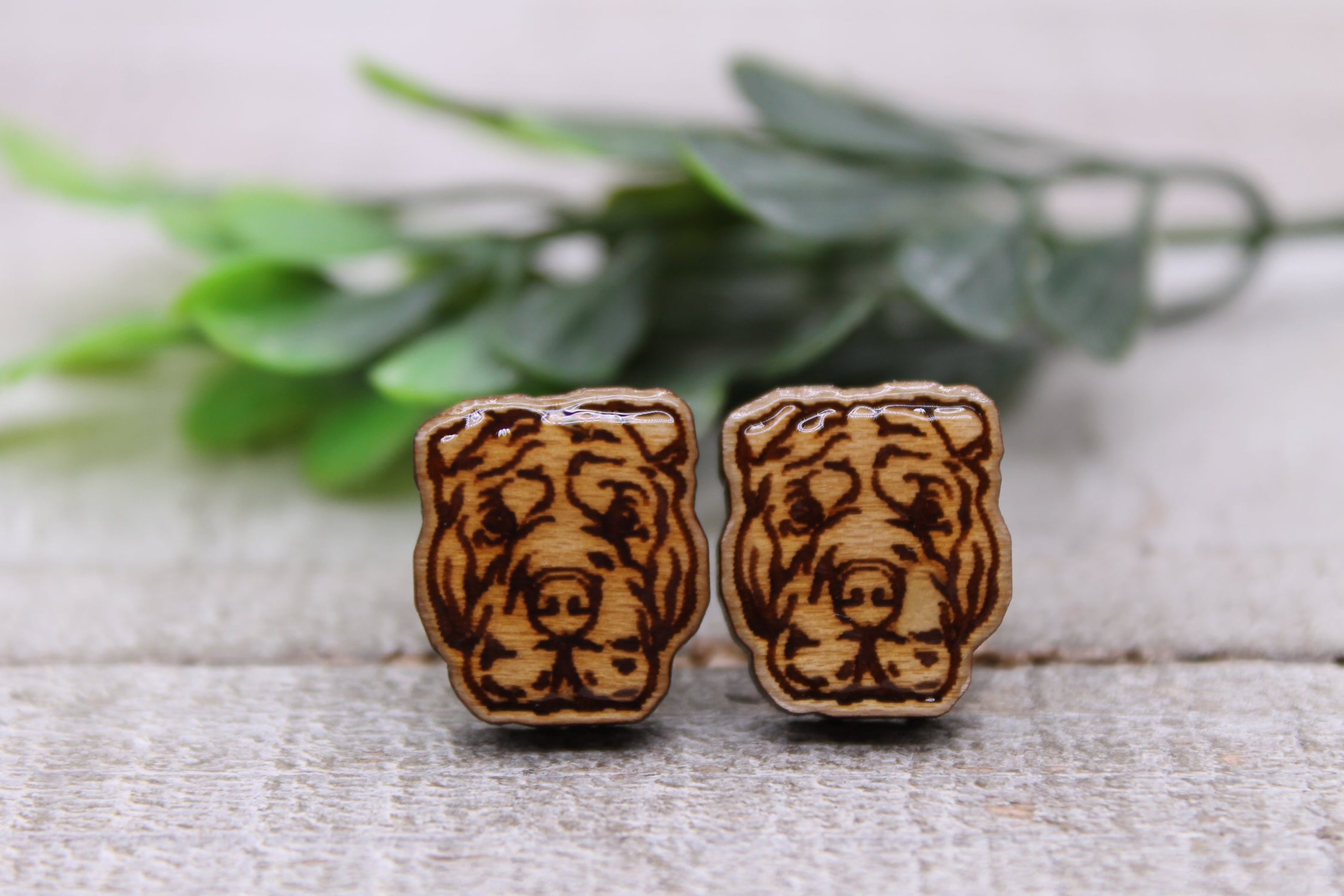 Stud Earrings Shar Pei Dog Breed 14mm Wood Hypoallergenic Stainless Steel Post Rubber Push Back Handmade