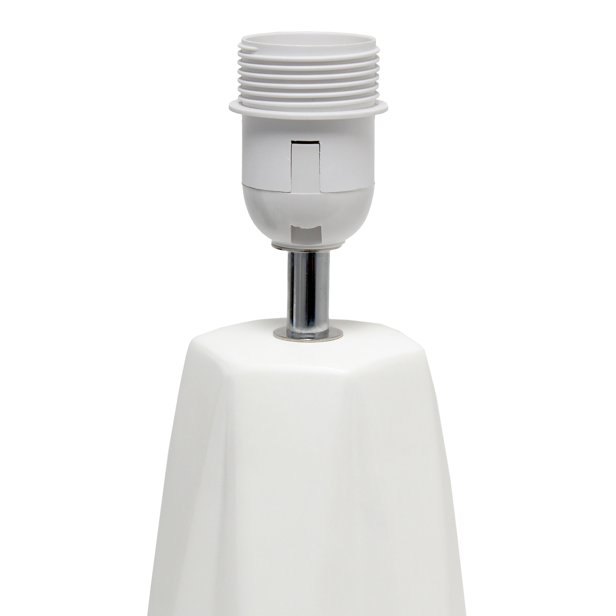 The Simple Designs Ceramic Prism Table Lamp is a contemporary lighting fixture designed to enhance your interior decor. It features a smooth glossy finish and is topped with a lovely fabric drum shade, providing an elegant yet simple aesthetic. The base of the lamp is available in multiple color options, allowing for versatility in design. This lamp is ideal for various settings, from living rooms to bedrooms, serving as a stylish source of light. It typically includes the lamp base and shade, making it ready to use in your home or office space, seamlessly blending functionality with modern design.