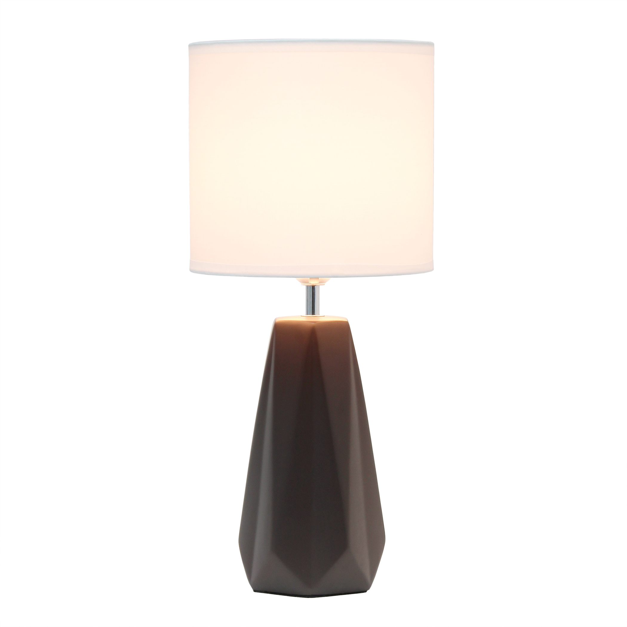 The Simple Designs Ceramic Prism Table Lamp is a contemporary lighting solution that combines elegance with functionality. It features a smooth glossy finish and is topped with a fabric drum shade, creating a refined appearance. Available in various color options, this lamp seamlessly complements diverse interior design themes. With its compact size, it is ideal for placing on side tables, nightstands, or desks. This lamp is perfect for enhancing the ambiance of living rooms, bedrooms, or office spaces, providing both style and illumination in any setting. It serves as both a decorative piece and a source of soft light, making it a versatile addition to your home.