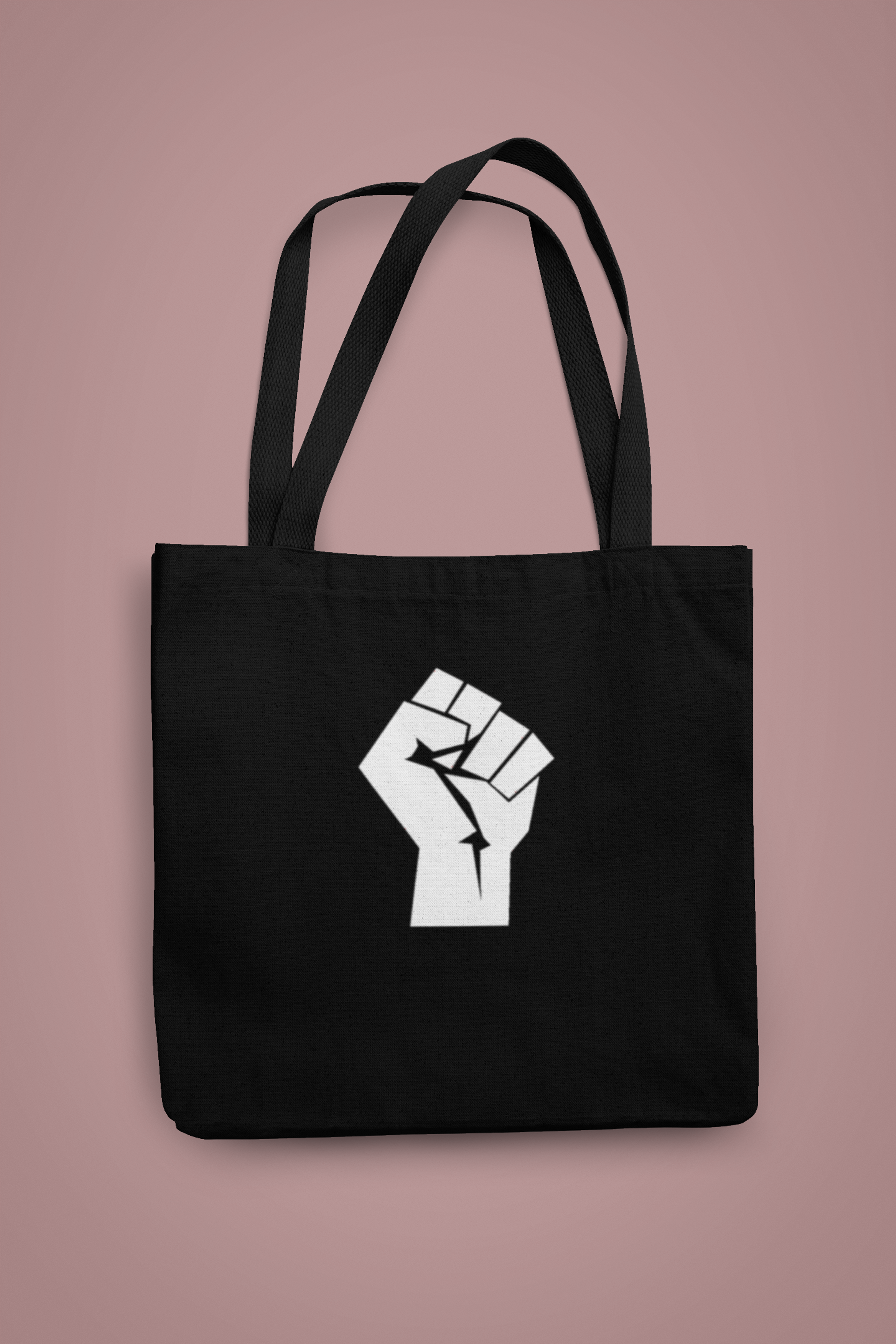 The Black Lives Matter/Resist Fist Tote is a versatile grocery tote bag designed for everyday use. It features a full side and deep bottom gusset, allowing for ample storage and organization. The tote measures 14 inches in width, 15 inches in height, and 4 inches in depth, making it suitable for carrying groceries, books, or personal items. Additionally, it has matching cotton handles that provide comfort during transport and reinforced stitching at stress points to enhance durability. This tote is ideal for grocery shopping, community events, or as a statement piece for social activism.