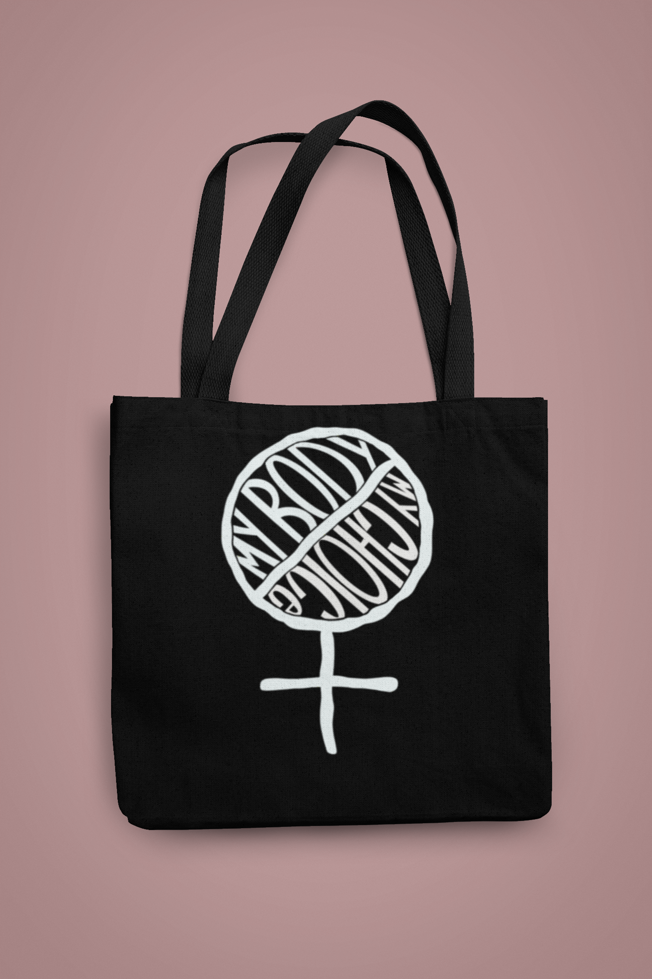 The BANS OFF OUR BODIES Tote is a grocery tote bag designed to advocate for women's rights and healthcare access. Measuring 15.7 inches by 3.3 inches, this tote features a full side and deep bottom gusset, providing ample space for carrying items. It comes with matching cotton handles that ensure comfortable carrying, and reinforced stitching at stress points enhances its durability. With each tote sold, approximately eight dollars are donated to Planned Parenthood to support essential services related to healthcare and education. This tote serves as both a practical accessory for shopping and a statement piece in support of reproductive rights in various everyday settings.