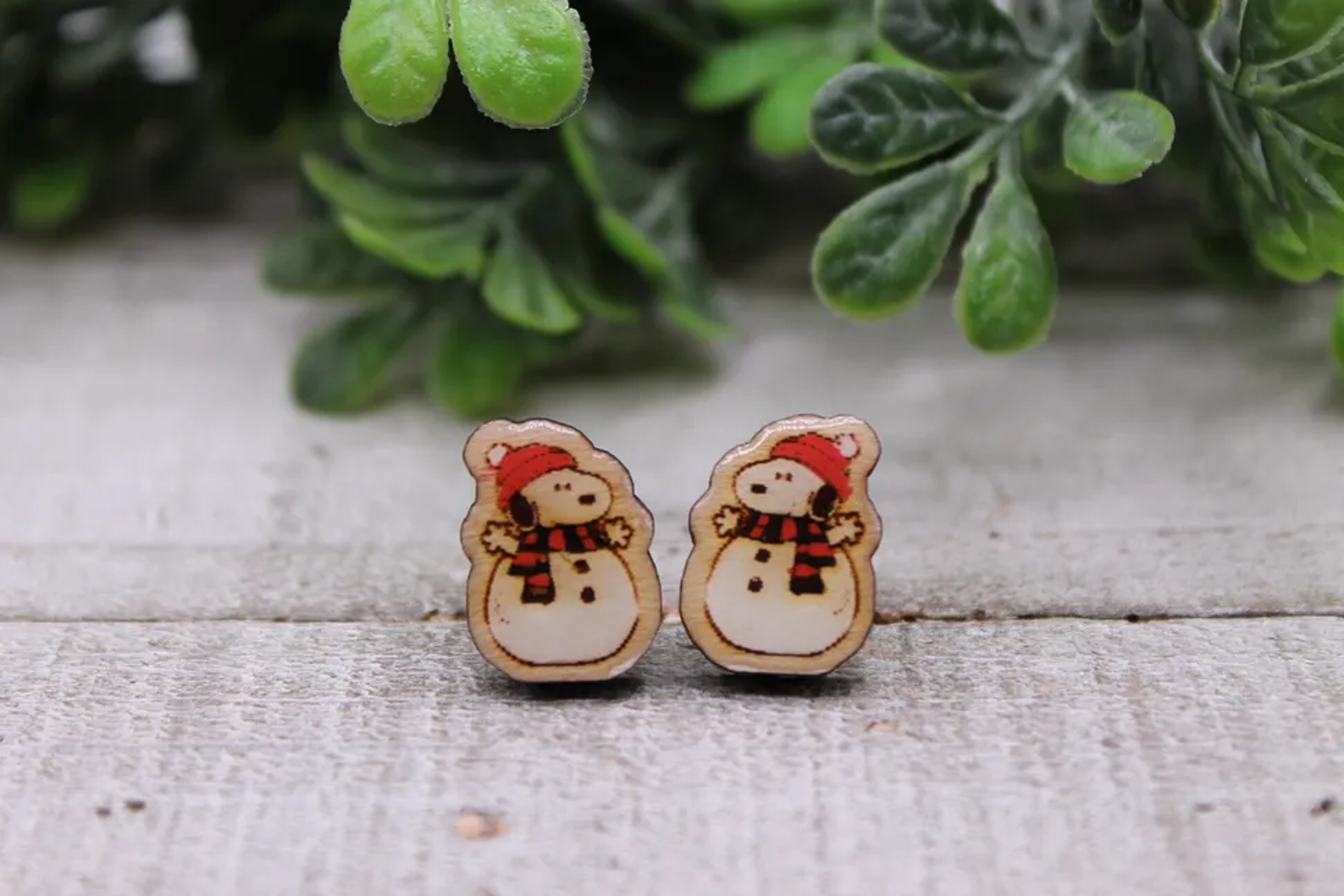 Wood Stud Earrings Snowman Snoopy 14mm Hypoallergenic Handmade Wooden Material Stainless Steel Post
