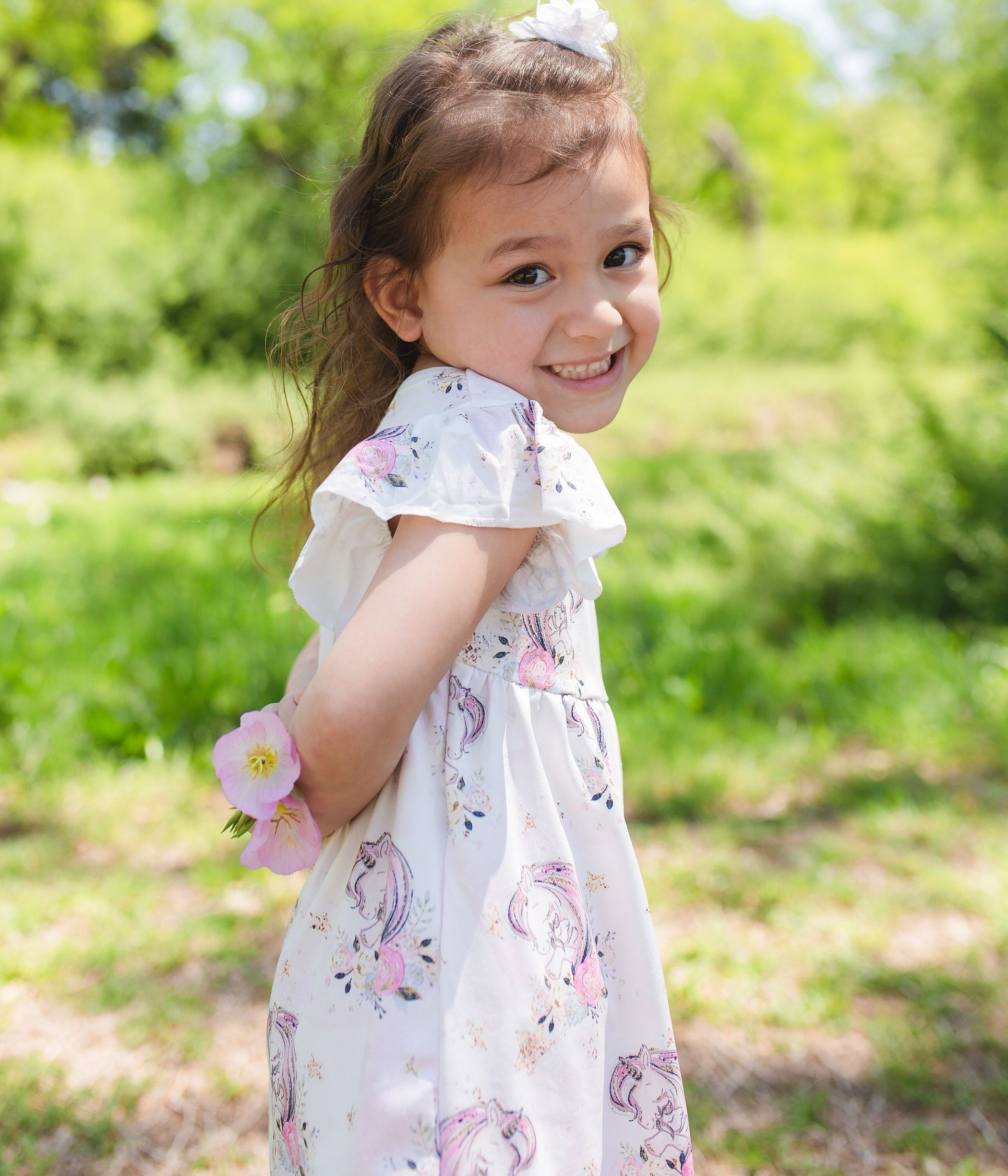 Conjunto de verano para niños que destaca por su diseño temático de unicornios y brillos. Este atuendo, ideal para días de juego, incluye una túnica corta de manga corta y una falda de pantalón corta a juego. Ambas prendas están elaboradas con un suave tejido de seda de leche que proporciona comodidad en climas cálidos. El conjunto, en un atractivo color rosa con impresiones de unicornios y rosas, está disponible en tallas que van del 2 al 9 años, lo que lo convierte en una opción versátil para niños en edad preescolar y escolar. Este conjunto es perfecto para actividades al aire libre, fiestas infantiles o cualquier ocasión de verano.