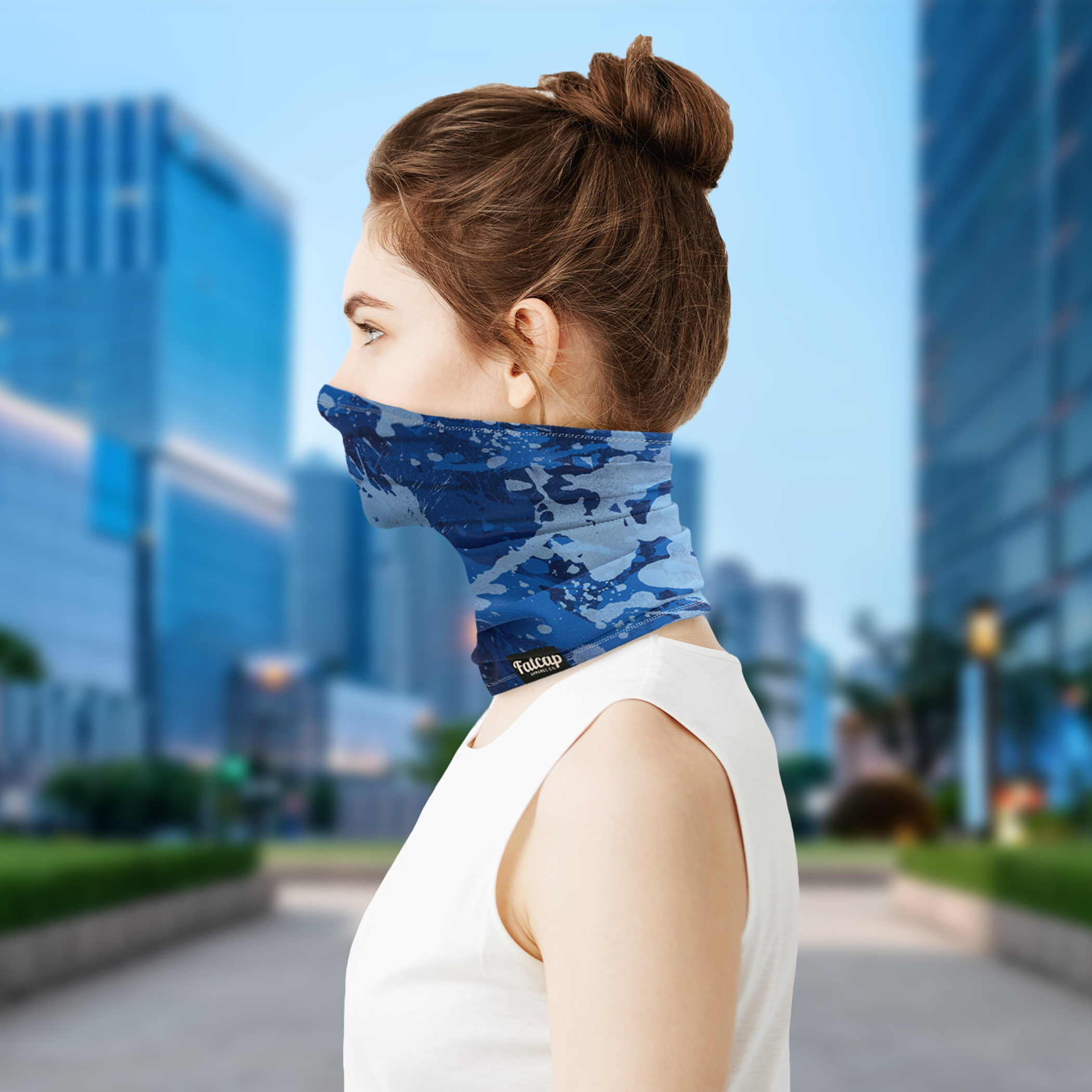 Gaiter para cuello Protección solar 86% Polyester 14% Spandex Para hombres y mujeres Estampado azul camuflaje