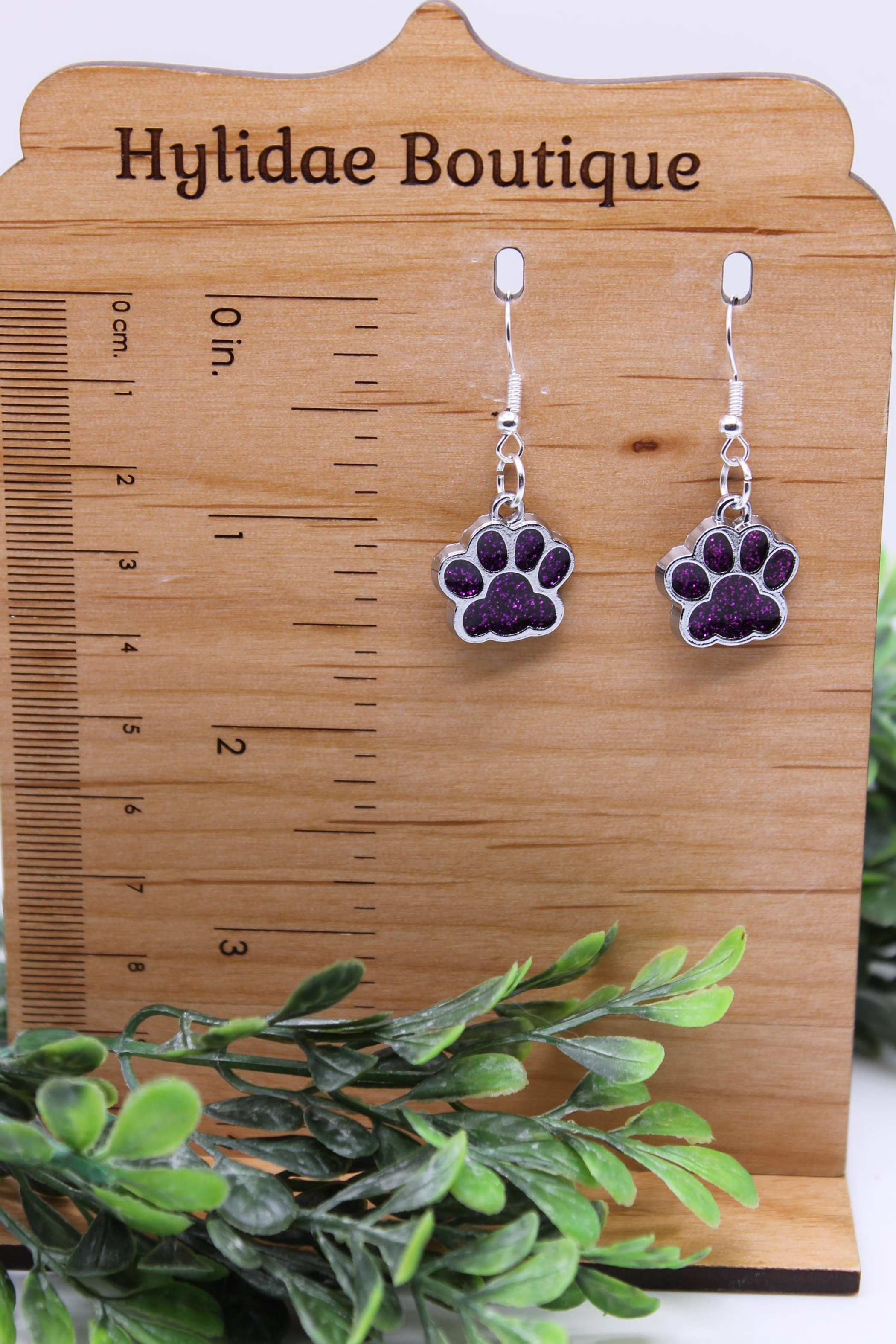 Los pendientes colgantes Purple Glitter Paw Prints son una pieza de joyería artesanal elaborada por Hylidae Boutique. Están fabricados con aleación y poseen ganchos y postes de acero inoxidable, asegurando durabilidad y un uso cómodo. Su diseño incluye estampados brillantes de huellas de patas en color púrpura, lo que añade un toque divertido y atractivo. Estos pendientes son hipoalergénicos, ya que no contienen plomo ni níquel, lo que los hace adecuados para personas con sensibilidad en la piel. Se recomienda cuidarlos adecuadamente, retirándolos antes de ducharse, nadar o dormir para mantener su belleza. Son ideales para ocasiones informales o para dar un toque especial a tu atuendo diario.